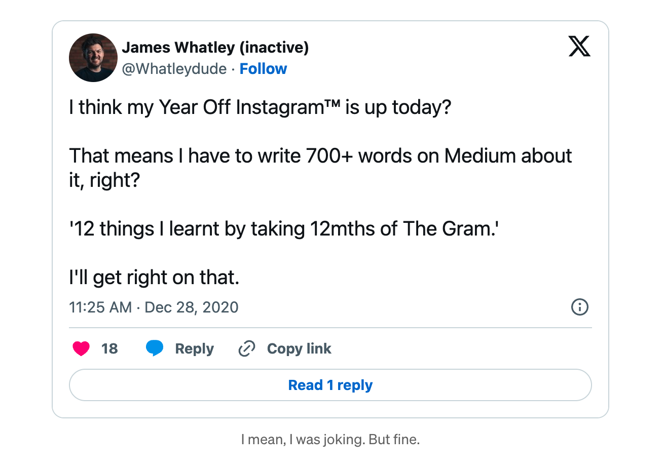So many. But it has to be a fight worth having. Because just look at what’s happening to Instagram now the ad floodgates have opened. This clutter ruins the real fun for the rest of us. Dragon slayed?